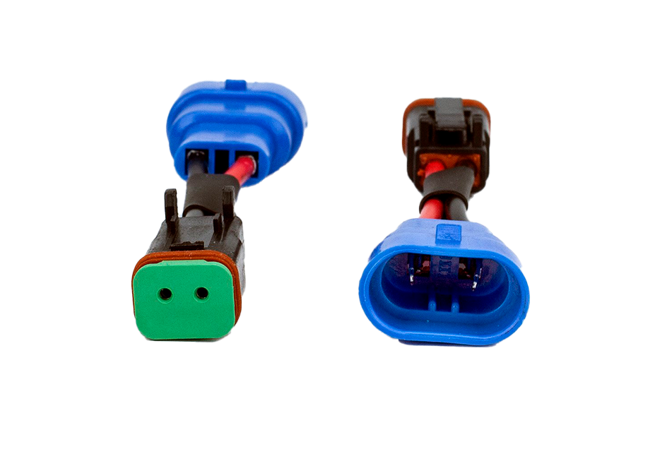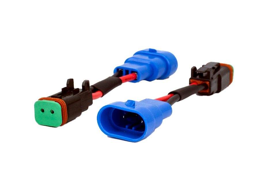 Cali Raised LED is proud to offer this Deutsch to H10 adapter. H10 will also fit 9145 and 9006 connectors. Great use is for when you have an H10 plug and don’t want to cut factory wiring, use this plug to adapt to the Deutsch connector.