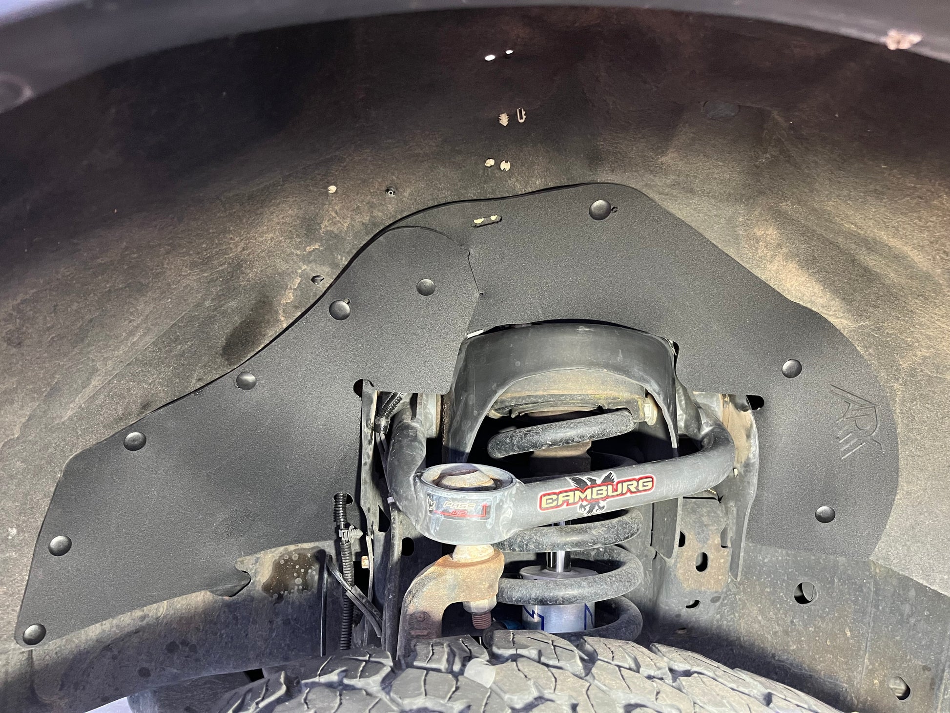 Protect your engine compartment from mud, rocks, and other debris on the road with Ark Splash Guards for the 2010-2014 Ford F150 EcoBoost. These inner wheel well fender liner extensions are designed to fit all stock and suspension lifted vehicles, making them a versatile and reliable all-weather shield.