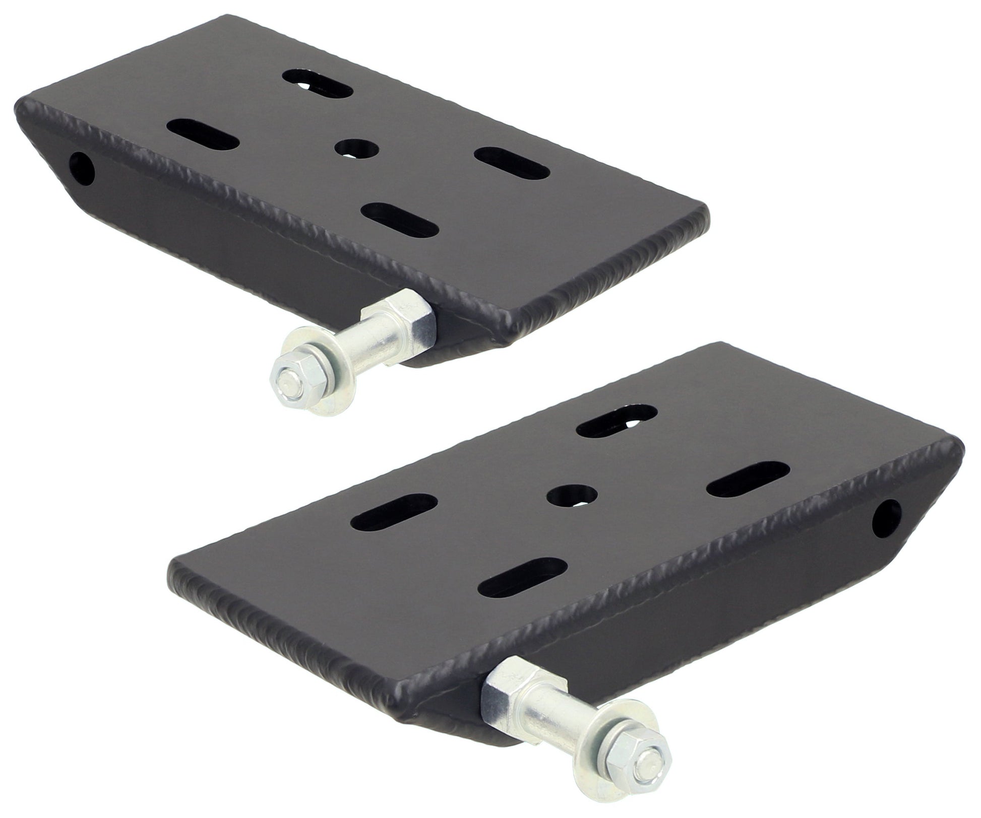 RockJock's Spring Plates are built to withstand the most rugged off road abuse! Plates feature a 5/16 in. thick steel top plate and a built-on, 1/4 in. skid plate to protect u-bolts. These heavy duty universal spring plates are designed to be used with 2 in. wide springs and come with bolt on, replaceable sway bar mounts. Price listed is for a pair of plates.