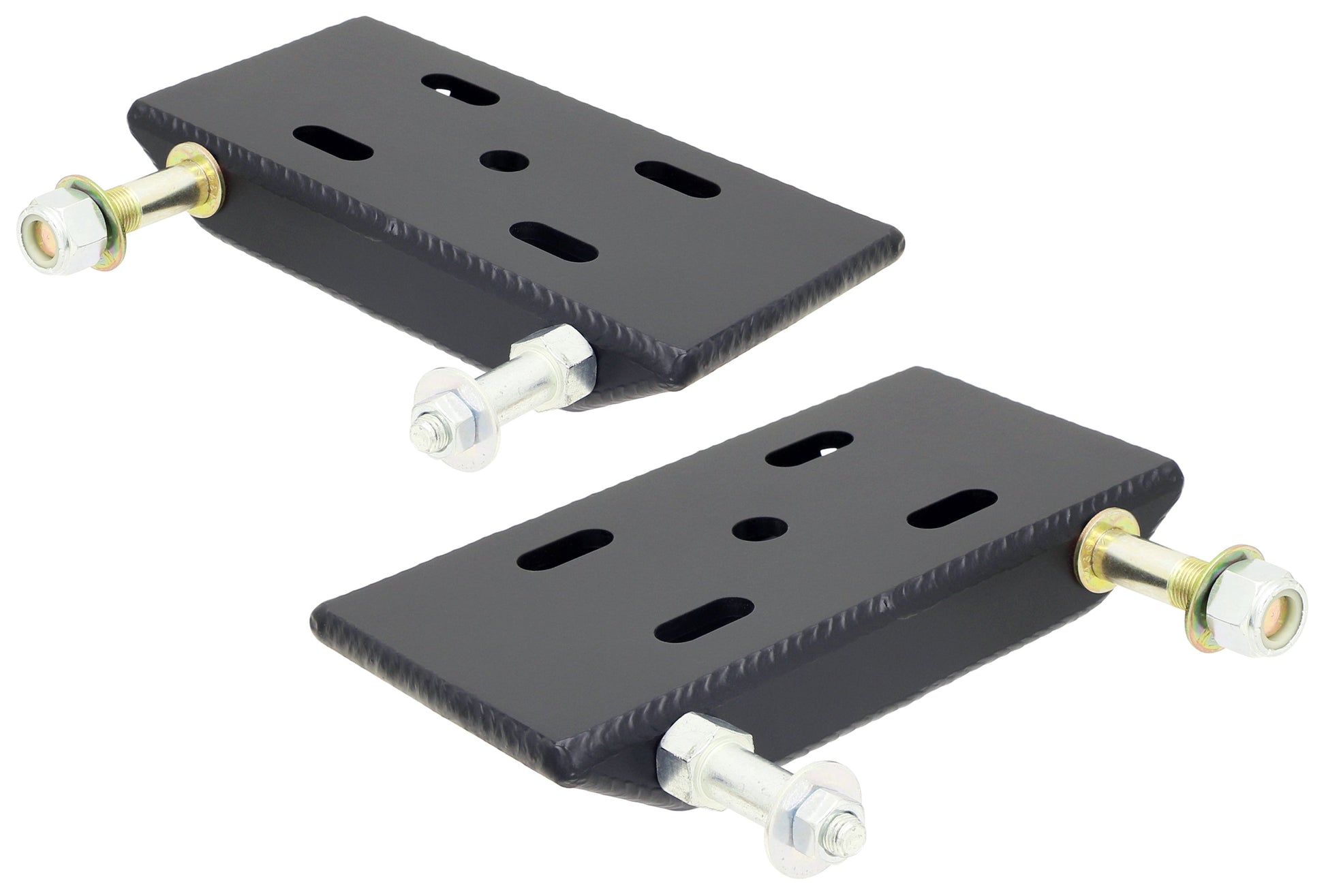 RockJock's Spring Plates are built to withstand the most rugged off road abuse! Plates feature a 5/16 in. thick steel top plate and a built-on, 1/4 in. skid plate to protect u-bolts. These heavy duty universal spring plates are designed to be used with 2 1/2 in. wide springs and come with bolt on, replaceable shock and sway bar mounts. Price listed is for a pair of plates.