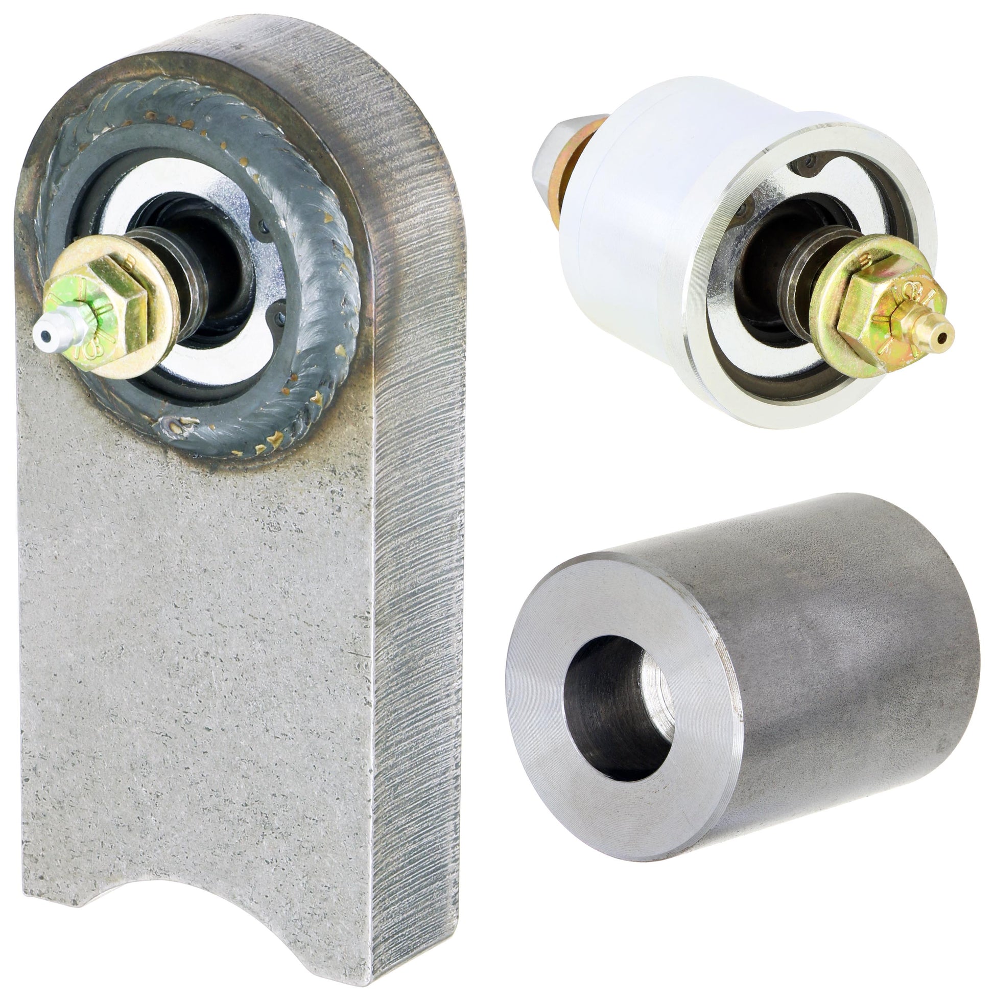 RockJock's Front Axle Housing Johnny Joint Kit for TJ Wrangler, LJ Unlimited, XJ Cherokee, MJ Comanche and ZJ Grand Cherokee vehicles replaces the front differential housing upper control arm bushings Johnny Joint rod ends to get maximum articulation out of your suspension! This kit includes a Johnny Joint insert for gear case ear and installation tool, as well as 1 in. thick flame-cut steel upright for the tube side, with the Johnny Joint already installed. This kit has you cut off the top of the stock bracket that is on the tube and install the new RockJock piece into the existing bracket base. You then weld the RockJock piece to the existing bracket base. This allows for no welding to be done on the tube, resulting in no warpage of the tube.This kit requires cutting and welding equipment for installation!!! NOTES: This kit included larger than stock, 1/2 in. greasable hardware for use in performance applications! Control arm holes will have to be drilled to accept the 1/2 in. bolts. This kit is for use on any factory Dana 30 or 44 differential only!